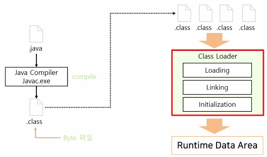 1. Java Compiler가 JAVA로 작성된 소스 코드 .java 파일을 .class 파일인 Byte Code로 컴파일한다.