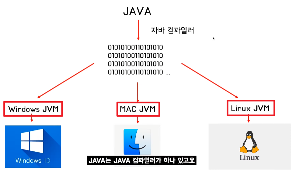 java소스 파일은 직접 OS에 가서 실행하는 것이 아니라 JVM을 거쳐서 OS와 상호작용을 하는 것이다.