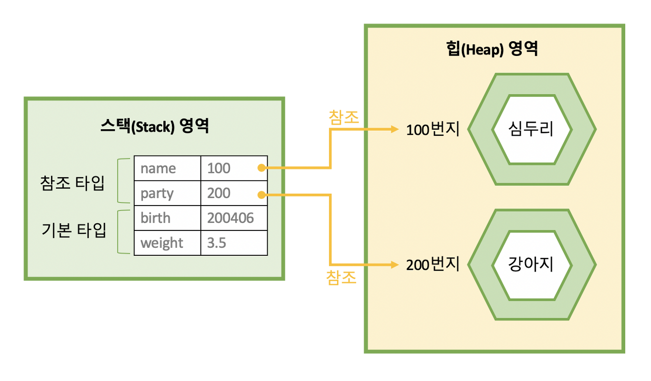 2. Reference type 변수는 heap이나 method area의 객체 주소를 가진다.
