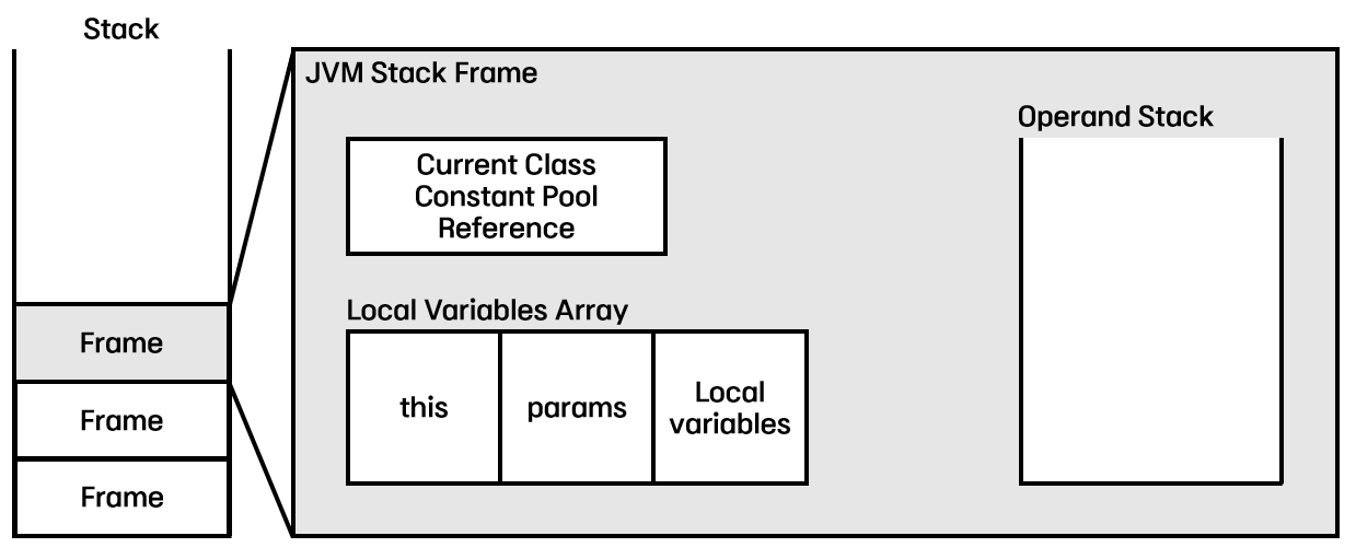 Stack의 기본 자료구조인 Frame은 아래 세 가지 요소로 구성되어있다.